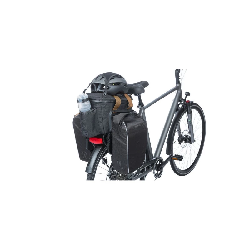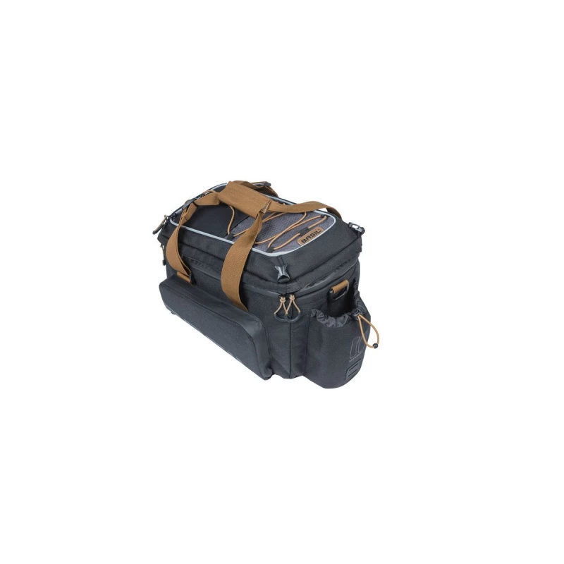 Vous cherchez un sac où tout a été pensé ? Alors le sac de coffre Basil Miles XL Pro est ce qu’il vous faut. Ce sac de sport est étanche et possède de nombreuses fonctionnalités pratiques. Il possède deux poches latérales imperméables et pliables, et le compartiment supérieur est également extensible. La capacité de 9 litres peut être étendue à 36 litres. De plus, le sac a une poche isolée supplémentaire pour une bouteille d’eau et des séparateurs supplémentaires afin que vous puissiez diviser le compartiment principal. Pour garder les aliments et les boissons au frais, il y a deux compartiments pour les packs réfrigérants. Dans un compartiment supplémentaire, vous trouverez une bande élastique en forme de X. Cette bande élastique peut être fixée sur un casque avec des boutons-pression. Vous pouvez emporter votre casque avec vous ! La sacoche de vélo se fixe facilement grâce à la plaque adaptatrice MIK préinstallée. Cette plaque adaptatrice vous permet d’encliqueter facilement la sacoche dans votre porte-bagages avec des profilés MIK ou une plaque support MIK. Vous souhaitez emporter le sac pannier au bureau ou dans un magasin ? Ensuite, cliquez à nouveau dessus tout aussi facilement. Le sac a une bandoulière amovible.
