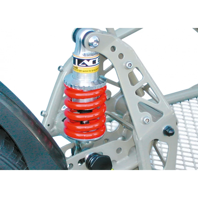 Cette remorque est équipée d’un amortisseur sur la roue arrière qui se règle en trois positions en fonction de la charge transportée ce qui contribue à réduire les vibrations et améliore la stabilité de la remorque.