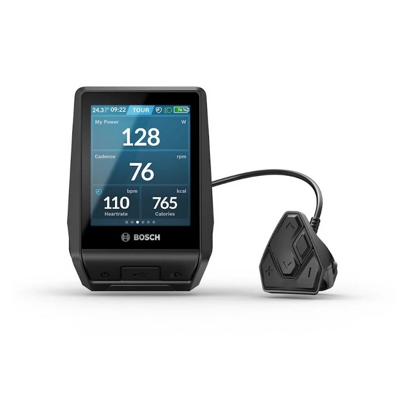 Il dispose d’un grand écran tactile en couleur haute résolution de 3,2 pouces mais peut aussi être commandé via la commande déportée séparée et fixée au guidon. La clarté et la luminosité de l’écran s’adaptent automatiquement à la luminosité ambiante.