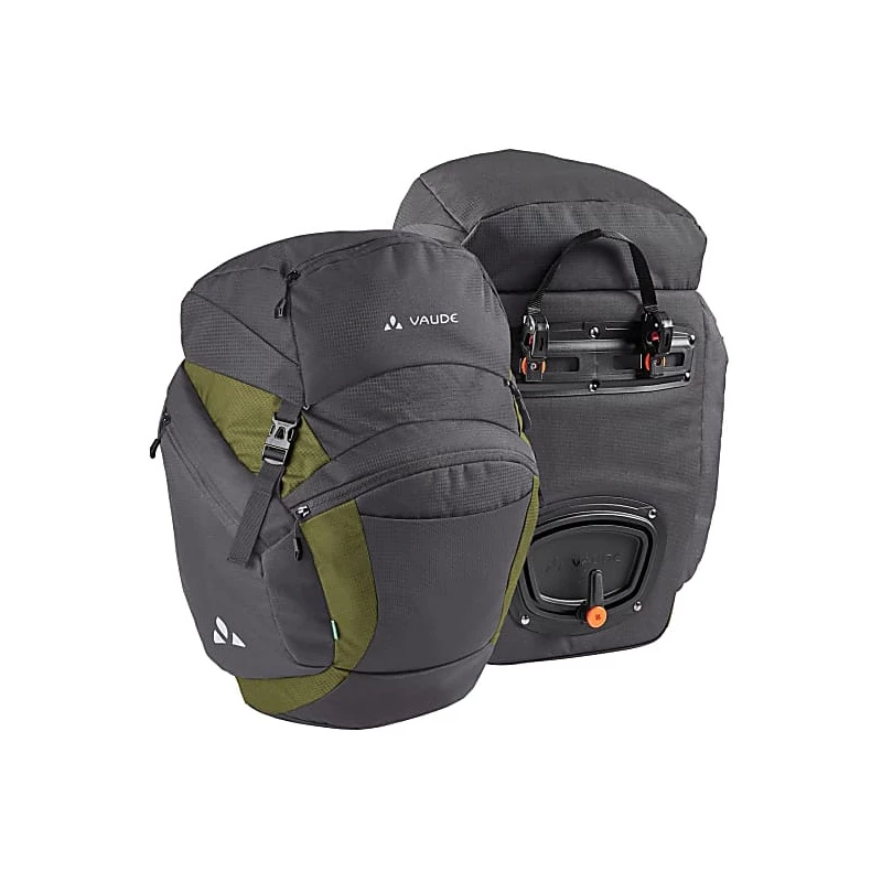 Les sacoches pour roue arrière OnTour sont des partenaires efficaces pour toutes les aventures à vélo. Le paquetage, protégé par le rabat avec compartiment séparé, peut être fortement comprimé par le soufflet d’élargissement dans le compartiment principal. Un porte-clés comme une poche extérieure appliquée pour l’accès rapide à une gourde ou une barre de céréales viennent parfaire l’équipement de cette merveille d’organisation. Une autre poche avant permet de conserver des cartes ou d’autres documents ; un maillot humide ou une veste légère peut trouver place dans la poche en filet élastique appliquée sur l’avant. Les sacs dotés d’éléments réfléchissants sont fixés de manière stable à droite et à gauche sur le porte-bagage arrière avec le système de fixation QMR 2.0, s’ajustent facilement à l’aide d’une molette et peuvent être facilement retirés en toute rapidité. Un petit cadenas de vélo (145/20) permet de la verrouiller directement sur le crochet QMR. Le volume de la paire de sacs au poids plume s’élève à 46 l. Des housses de pluie sont disponibles pour les deux sacs. Les sacs bénéficient d’une finition durablement déperlante Eco Finish sans PFC. Un bon point pour toi comme pour l’environnement.